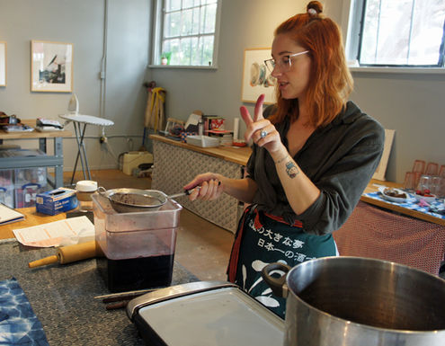 Coming from a home that valued art and creativity, I have always been drawn to color and to making. For as long as I can remember, I’ve operated with the idea that if I can imagine something, I can find a way to create it. My mother is a textile artist and my father a fine art painter, and the quite literal marriage of these crafts is apparent in the work that I do. My first hands-on experience with indigo was on a trip to Japan and came to be quite serendipitously. This introduction had me hooked and prompted me to study textiles, Japanese Shibori, and natural dyeing while back home in Honolulu where I was also inspired by the endless natural colors all around. During my second pregnancy I made myself a Shibori baby wrap, which received enough attention that I began selling online and Yuzu & Rose was born. After relocating to Santa Cruz I was longing to break into the local creative community, and on a whim I signed up to teach a workshop in one of my favorite small shops in town. After that first day, I realized that this was what I was meant to be doing. Creating community, inspiring and empowering others to create, and in turn exercising my own “beginner’s mindset” kept my personal practice fresh and inspired. That shop, The Craftsmen Collective, is now my studio space and home base where I teach the majority of my workshops. I return to Japan every year and continue to be inspired by the traditions and history of Japanese Shibori and textile art, as well as the ever-changing natural color palette of Coastal California here at home.